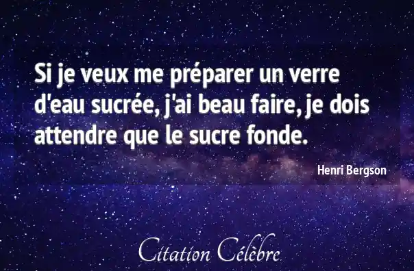 Si je veux me préparer un verre d'eau sucrée, j'ai beau faire, je dois attendre que le sucre fonde.