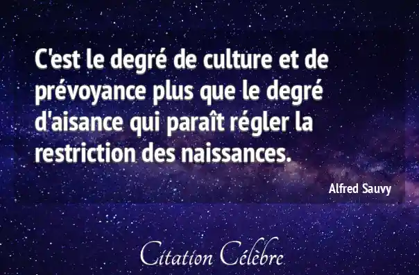 C'est le degré de culture et de prévoyance plus que le degré d'aisance qui paraît régler la restriction des naissances.
