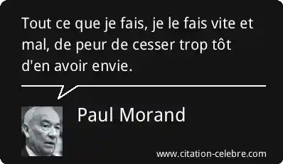 Tout ce que je fais, je le fais vite et mal, de peur de cesser trop tôt d'en avoir envie.