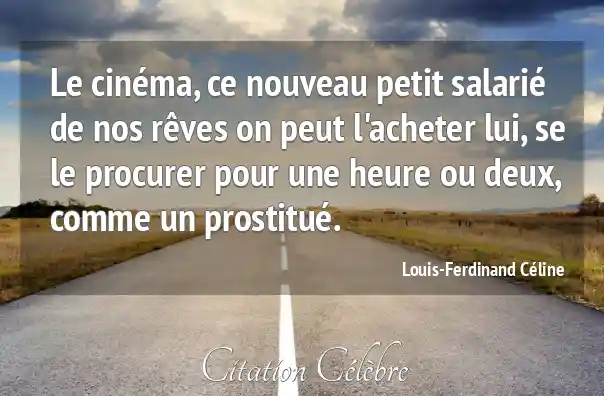 Le cinéma, ce nouveau petit salarié de nos rêves on peut l'acheter lui, se le procurer pour une heure ou deux, comme un prostitué.