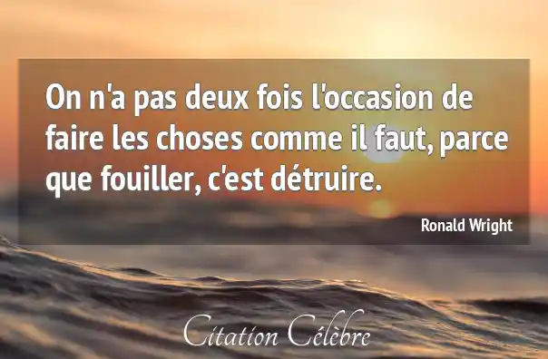 On n'a pas deux fois l'occasion de faire les choses comme il faut, parce que fouiller, c'est détruire.