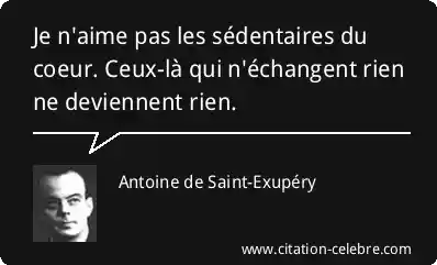 Je n'aime pas les sédentaires du coeur. Ceux-là qui n'échangent rien ne deviennent rien.