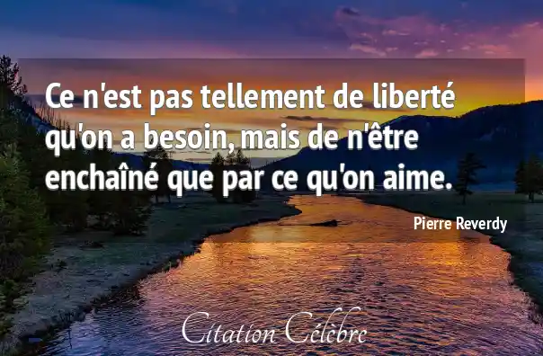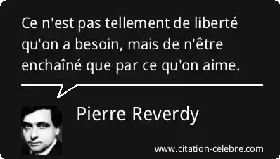 Ce n'est pas tellement de liberté qu'on a besoin, mais de n'être enchaîné que par ce qu'on aime.