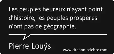 Les peuples heureux n'ayant point d'histoire, les peuples prospères n'ont pas de géographie.