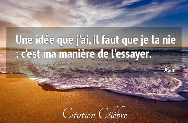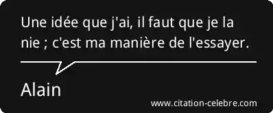 Une idée que j'ai, il faut que je la nie ; c'est ma manière de l'essayer.