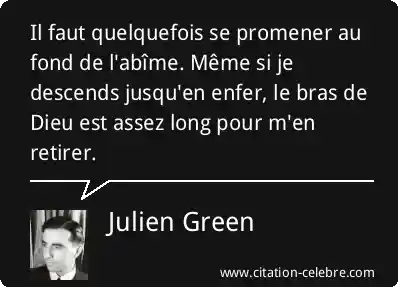 Il faut quelquefois se promener au fond de l'abîme. Même si je descends jusqu'en enfer, le bras de Dieu est assez long pour m'en retirer.