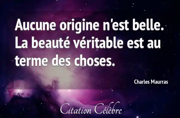 Aucune origine n'est belle. La beauté véritable est au terme des choses.