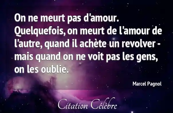 On ne meurt pas d'amour. Quelquefois, on meurt de l'amour de l'autre, quand il achète un revolver - mais quand on ne voit pas les gens, on les oublie.
