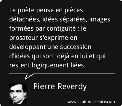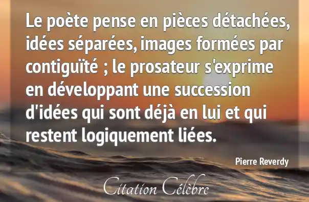 Le poète pense en pièces détachées, idées séparées, images formées par contiguïté ; le prosateur s'exprime en développant une succession d'idées qui sont déjà en lui et qui restent logiquement liées.