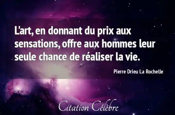 L'art, en donnant du prix aux sensations, offre aux hommes leur seule chance de réaliser la vie.