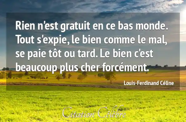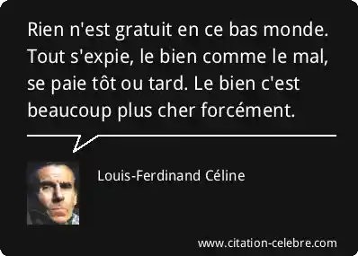 Rien n'est gratuit en ce bas monde. Tout s'expie, le bien comme le mal, se paie tôt ou tard. Le bien c'est beaucoup plus cher forcément.