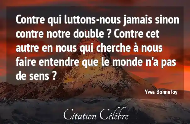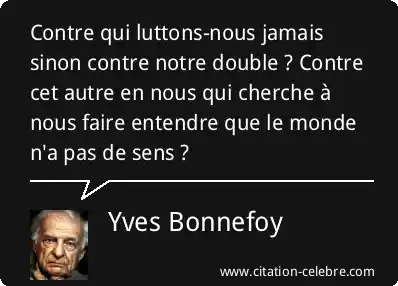 Contre qui luttons-nous jamais sinon contre notre double ? Contre cet autre en nous qui cherche à nous faire entendre que le monde n'a pas de sens ?