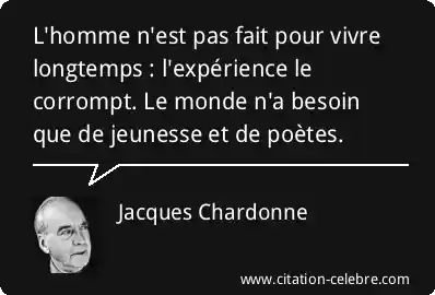 L'homme n'est pas fait pour vivre longtemps : l'expérience le corrompt. Le monde n'a besoin que de jeunesse et de poètes.