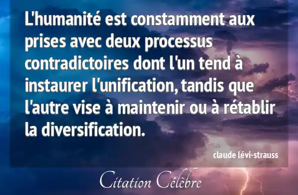 L'humanité est constamment aux prises avec deux processus contradictoires dont l'un tend à instaurer l'unification, tandis que l'autre vise à maintenir ou à rétablir la diversification.