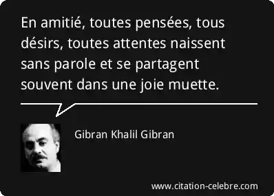 En amitié, toutes pensées, tous désirs, toutes attentes naissent sans parole et se partagent souvent dans une joie muette.