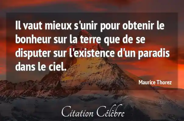 Il vaut mieux s'unir pour obtenir le bonheur sur la terre que de se disputer sur l'existence d'un paradis dans le ciel.