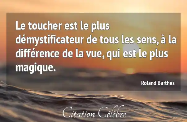 Le toucher est le plus démystificateur de tous les sens, à la différence de la vue, qui est le plus magique.