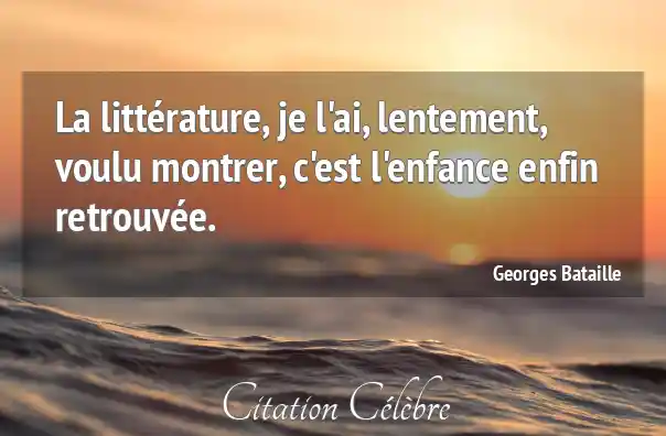 La littérature, je l'ai, lentement, voulu montrer, c'est l'enfance enfin retrouvée.