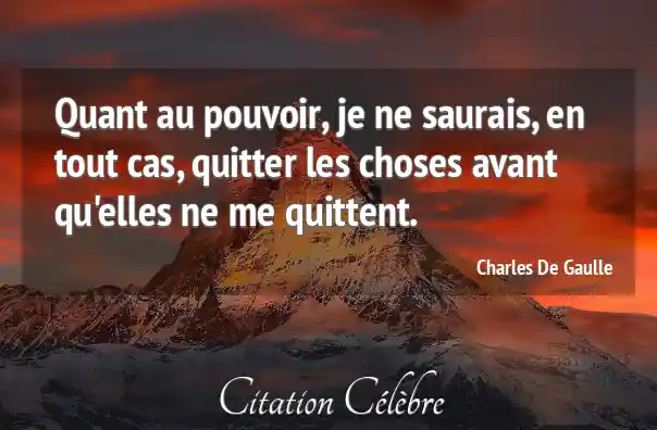 Quant au pouvoir, je ne saurais, en tout cas, quitter les choses avant qu'elles ne me quittent.