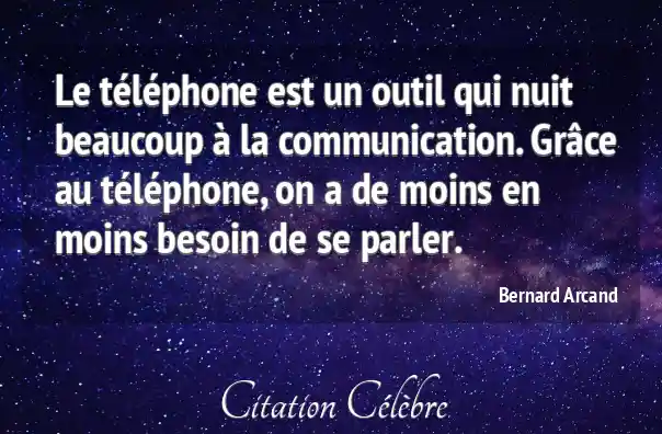 Le téléphone est un outil qui nuit beaucoup à la communication. Grâce au téléphone, on a de moins en moins besoin de se parler.