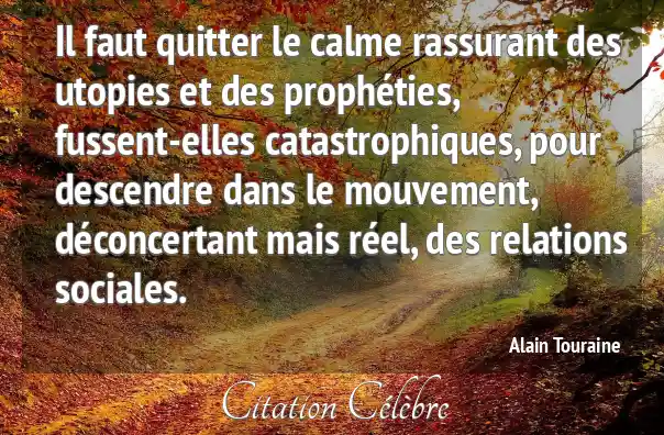 Il faut quitter le calme rassurant des utopies et des prophéties, fussent-elles catastrophiques, pour descendre dans le mouvement, déconcertant mais réel, des relations sociales.