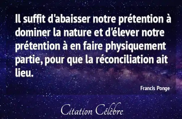 Il suffit d'abaisser notre prétention à dominer la nature et d'élever notre prétention à en faire physiquement partie, pour que la réconciliation ait lieu.