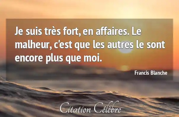 Je suis très fort, en affaires. Le malheur, c'est que les autres le sont encore plus que moi.