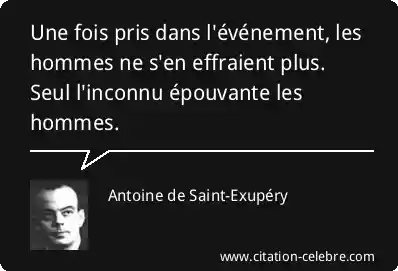 Une fois pris dans l'événement, les hommes ne s'en effraient plus. Seul l'inconnu épouvante les hommes.