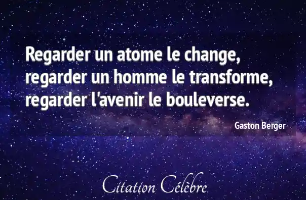 Regarder un atome le change, regarder un homme le transforme, regarder l'avenir le bouleverse.