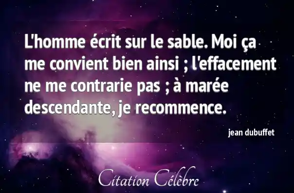 L'homme écrit sur le sable. Moi ça me convient bien ainsi ; l'effacement ne me contrarie pas ; à marée descendante, je recommence.