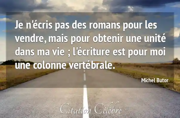Je n'écris pas des romans pour les vendre, mais pour obtenir une unité dans ma vie ; l'écriture est pour moi une colonne vertébrale.