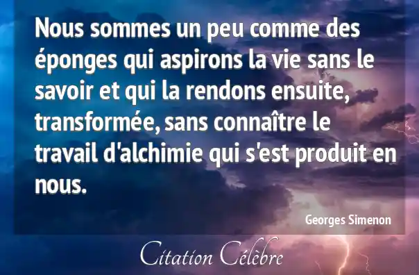 Nous sommes un peu comme des éponges qui aspirons la vie sans le savoir et qui la rendons ensuite, transformée, sans connaître le travail d'alchimie qui s'est produit en nous.