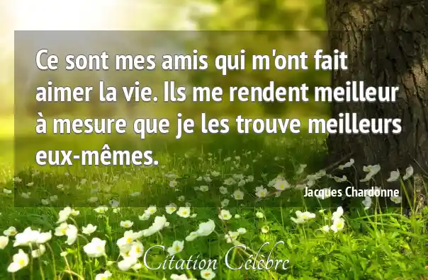 Ce sont mes amis qui m'ont fait aimer la vie. Ils me rendent meilleur à mesure que je les trouve meilleurs eux-mêmes.