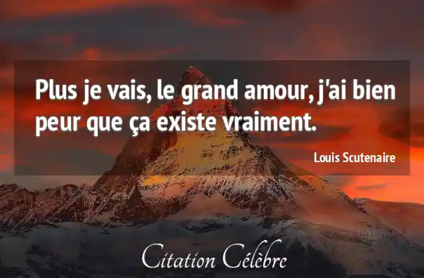 Plus je vais, le grand amour, j'ai bien peur que ça existe vraiment.