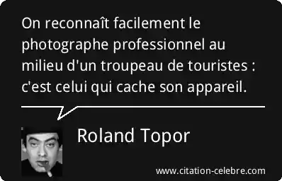 On reconnaît facilement le photographe professionnel au milieu d'un troupeau de touristes : c'est celui qui cache son appareil.