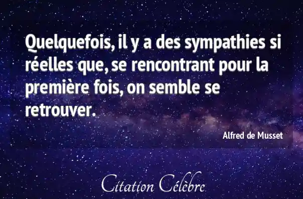 Quelquefois, il y a des sympathies si réelles que, se rencontrant pour la première fois, on semble se retrouver.