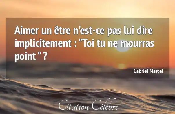 Aimer un être n'est-ce pas lui dire implicitement : "Toi tu ne mourras point " ?