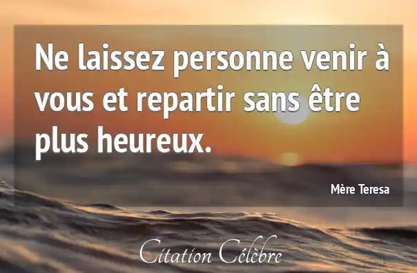 Ne laissez personne venir à vous et repartir sans être plus heureux.
