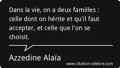 Dans la vie, on a deux familles : celle dont on hérite et qu'il faut accepter, et celle que l'on se choisit.