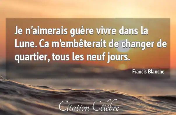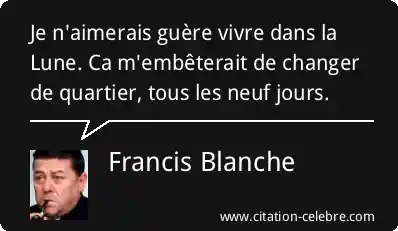 Je n'aimerais guère vivre dans la Lune. Ca m'embêterait de changer de quartier, tous les neuf jours.
