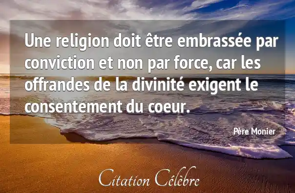 Une religion doit être embrassée par conviction et non par force, car les offrandes de la divinité exigent le consentement du coeur.