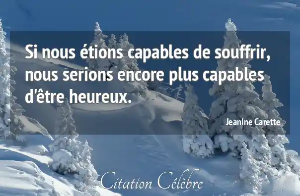 Si nous étions capables de souffrir, nous serions encore plus capables d'être heureux.