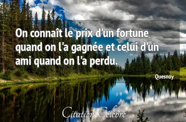 On connaît le prix d'un fortune quand on l'a gagnée et celui d'un ami quand on l'a perdu.