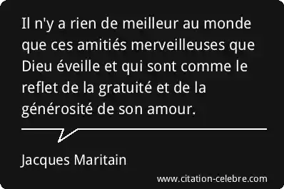 Il n'y a rien de meilleur au monde que ces amitiés merveilleuses que Dieu éveille et qui sont comme le reflet de la gratuité et de la générosité de son amour.