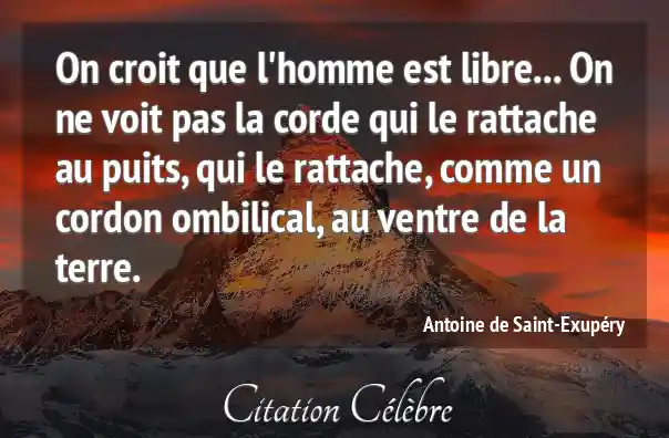 On croit que l'homme est libre... On ne voit pas la corde qui le rattache au puits, qui le rattache, comme un cordon ombilical, au ventre de la terre.