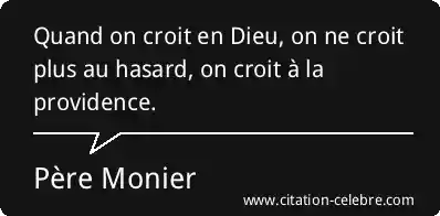 Quand on croit en Dieu, on ne croit plus au hasard, on croit à la providence.