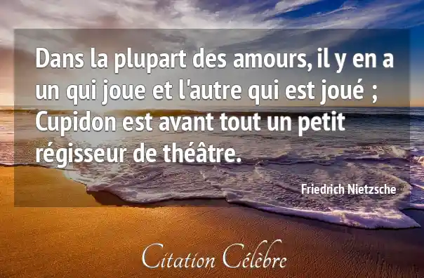 Dans la plupart des amours, il y en a un qui joue et l'autre qui est joué ; Cupidon est avant tout un petit régisseur de théâtre.