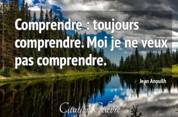 Comprendre : toujours comprendre. Moi je ne veux pas comprendre.
