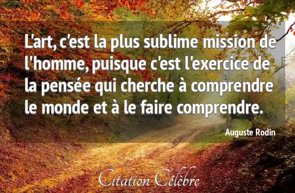 L'art, c'est la plus sublime mission de l'homme, puisque c'est l'exercice de la pensée qui cherche à comprendre le monde et à le faire comprendre.