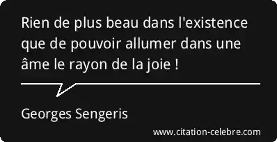 Rien de plus beau dans l'existence que de pouvoir allumer dans une âme le rayon de la joie !